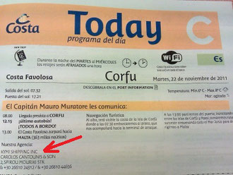 Consignatario que actúa en nombre del propietario del buque en los puertos con el que debemos contactar en caso de perder el barco por llegar tarde al embarque u otra circunstancia. Su número telefónico de contacto lo encontraremos en los Diarios de abordo.