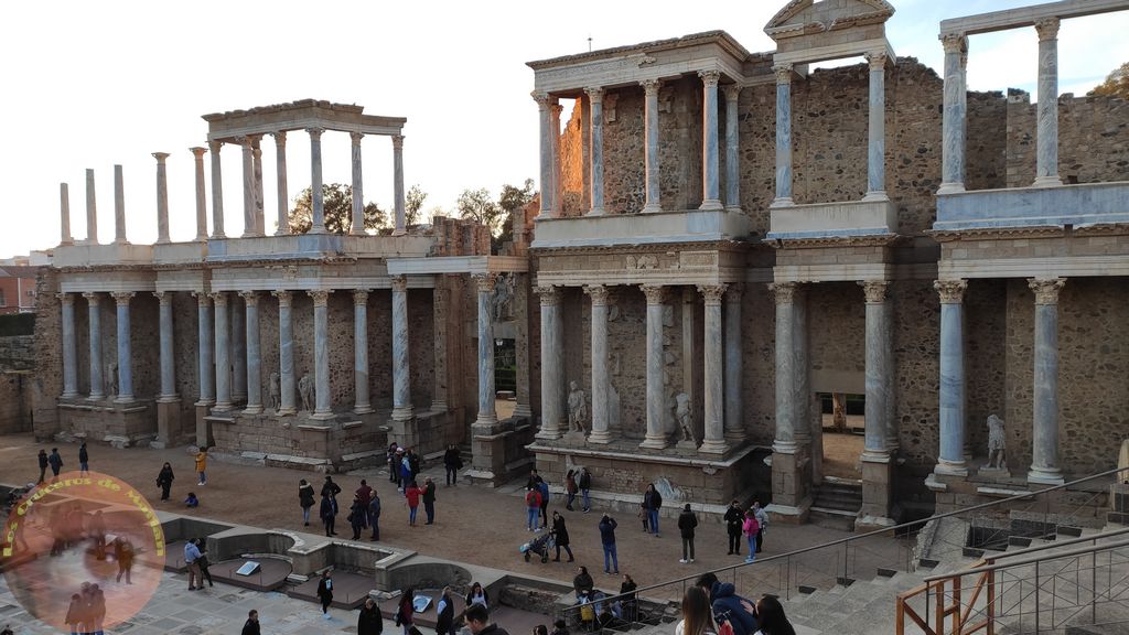 - 5.- Teatro Romano: Este monumento, el más visitado de Mérida, se encuentra localizado en el cerro de San Albín y fue construido por mandato de Agripa, yerno de Augusto entre los años 16 y 15 AC. El teatro dispone de una capacidad para 3.000 personas sentadas, distribuidas en tres sectores de gradas según su rango social, caveas summa, media e ima, de abajo a arriba.