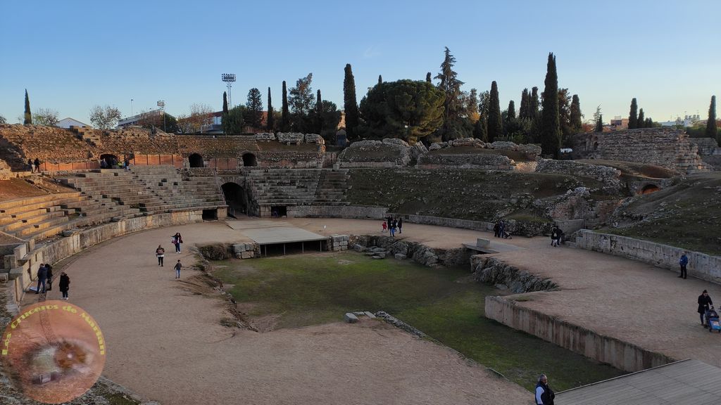 - 4.- Circo Romano: El circo romano de Mérida es uno de los más grandiosos del imperio y también uno de los mejor conservados. Su longitud de unos 400 metros y una anchura de unos 100 metros dan una idea de la magnitud de esta construcción, capaz de albergar en sus gradas hasta 30.000 espectadores. Su construcción se realizó a principios del siglo I, en tiempo de la dinastía Julio-Claudia, restaurándose en varias ocasiones a lo largo de la historia. Los espectáculos más habituales que se representaban en el circo eran las carreras de cuadrigas y bigas.