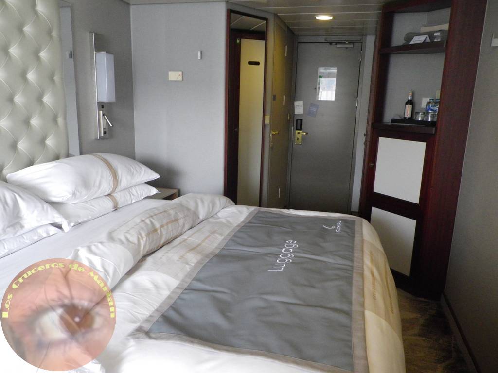 Bueno, ya que estamos en el camarote os voy a describir el mismo. El tamaño de la cabina categoría Club Veranda es de unos 16,3 m2, unas dimensiones suficientes para alojar dos personas, pero algo ajustadas en el caso de viajar una tercera persona.