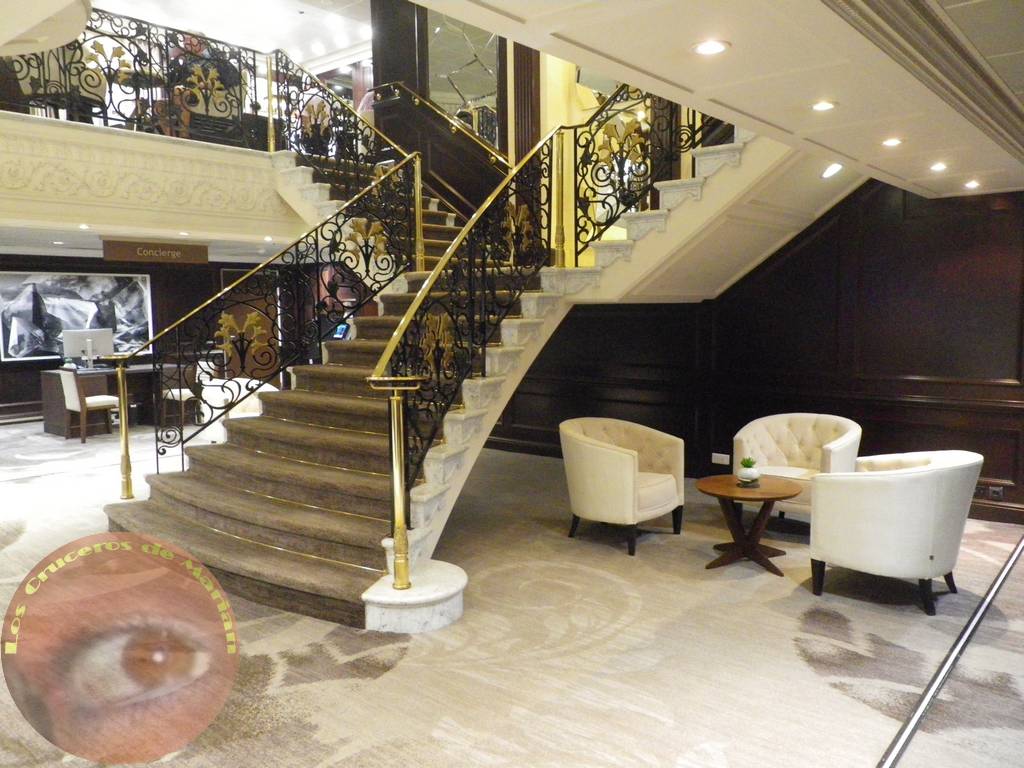 Además en esta cubierta también se encuentran la oficina de conserjería, el centro médico y camarotes. Frente a la recepción hay un tramo de escaleras con barandillas metálicas, formadas por filigranas en negro, así como adornos y pasamanos dorados. A media altura las escaleras se desdoblan hacia ambos laterales para acceder a la cubierta 5.