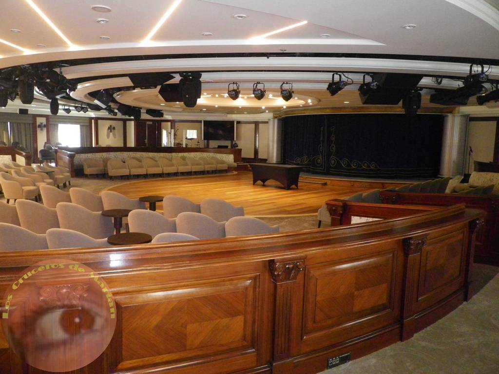 Para finalizar con esta cubierta, en su proa encontramos el Cabaret Lounge, gran salón donde todos los días disfrutábamos de espectáculos y actuaciones en vivo representadas por bailarines, cantantes, músicos, etc… Los espectáculos no son comparables a los de tipo Broadway que se ofrecen en otros barcos más grandes, pero os aseguro que la profesionalidad y la dedicación del equipo de animación hicieron que pasáramos unos momentos muy divertidos y entretenidos por las noches.