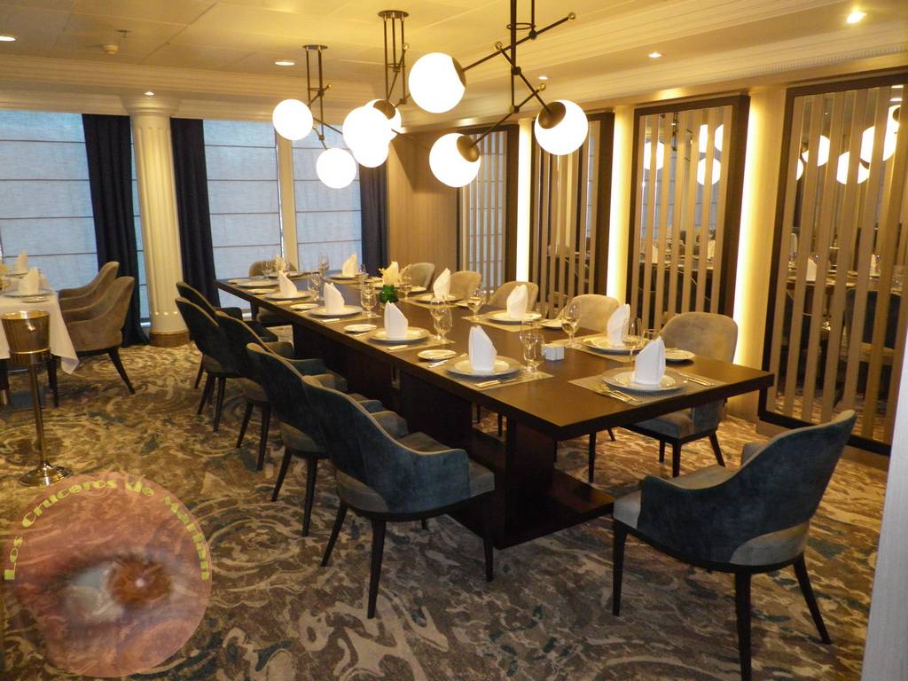 Bueno, ya estamos en la cubierta 10. En la popa tenemos los restaurantes de especialidades, el Aqualina Speciality Dinning y el Prime Speciality Dining. El primero con una gastronomía inspirada en la cocina italiana y el segundo dedicado a los amantes de las carnes y mariscos. Ambos restaurantes tienen un cargo adicional.