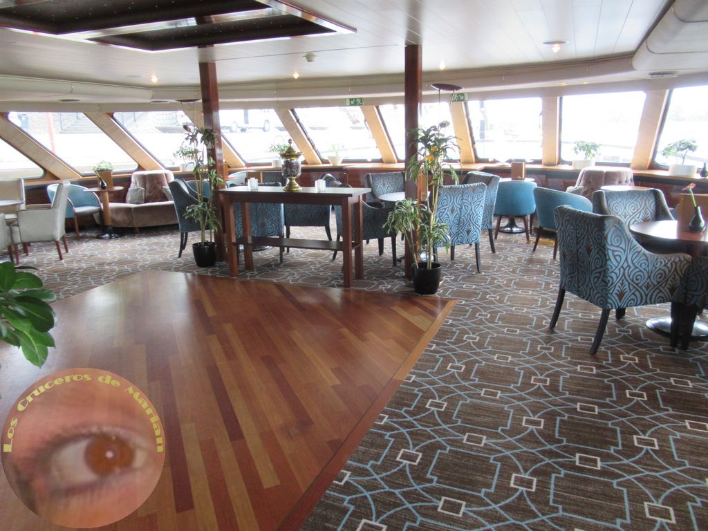 La parte anterior de este puente se halla ocupada por el restaurante y la cocina. En el restaurante se sirven los desayunos, almuerzos y cenas durante el crucero y consta de una amplia sala decorada con los mismos tonos que el resto del barco, con capacidad para la totalidad del pasaje. En nuestro caso la ocupación del barco era más o menos del 70 por ciento.