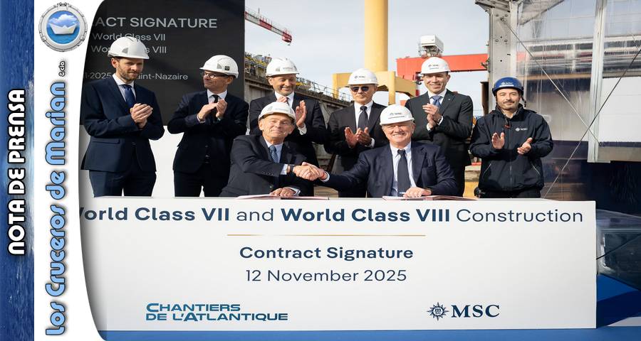 MSC Cruceros y Chantiers de l’Atlantique han anunciado hoy una importante ampliación de su larga relación con el pedido de dos barcos de la clase World Class adicionales, los números 7 y 8, cuya entrega está prevista para 2030 y 2031.