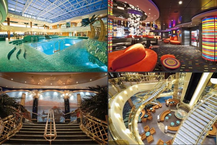 Resulta obvio que un buque de estas dimensiones cuente entre sus 18 cubiertas (14 de ellas para pasajeros) con una serie de áreas de entretenimiento y disfrute no aptas para barcos de menor tamaño, en sus 27.000 m² de espacios públicos se ubican diversos Restaurantes, Bares temáticos, Tiendas, Salón de fumadores, Ascensores panorámicos, Salas de fiesta, Zonas para niños y jóvenes, Piscinas (una de ellas cubierta), Zona de Spa, Jacuzzis, Casino, Solarium, Zona realidad virtual, Cine 4D, Gimnasio, Sala de Internet, Biblioteca y un Gran Teatro entre otros atractivos, además de zonas exclusivas para los pasajeros más privilegiados con servicio de mayordomo y zonas privadas.
