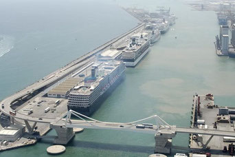 El puerto de Barcelona, líder de Europa en cruceros, está relativamente cerca del centro de la ciudad y dispone de nueve terminales en total. Siete de las cuales son destinadas a los barcos de crucero.